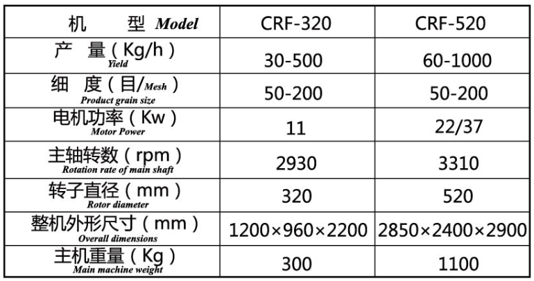 CRF series splintered unit is absorbing the international advanced technology, combined with the actual situation in the successful development of the vortex mill. The machine has a small particulates, temperature and other characteristics. Crushed by the host unit, powder collector, bag collectors, pipelines, electrical control cabinet and centrifugal fan components. Material in the short residence time inside the host, to prevent excessive crushing and - Pi stable, low noise, low power consumption, high productivity, handsome in appearance and other characteristics. Is ideal for real shot, pharmaceutical, chemical, paint, pesticides and other industries fine grinding equipment.